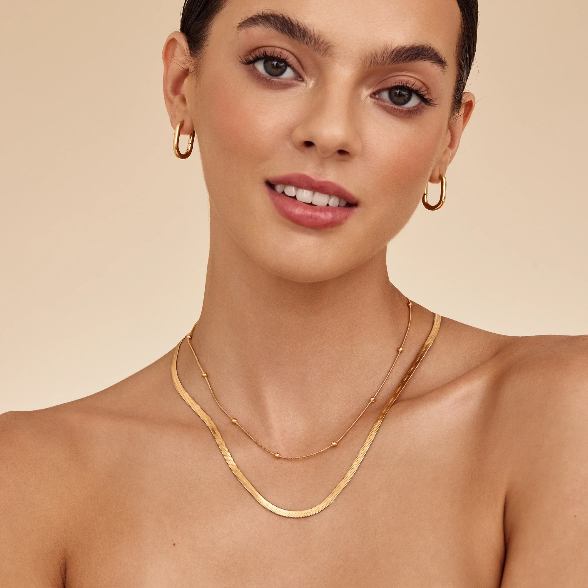 A modern classic you'll reach for every day. This gold snake chain lays flat against the skin, catching the light with every move. Effortlessly elegant on its own or layered with your favorite pieces, it's crafted to elevate even the simplest outfit. Water-resistant, tarnish-free, and endlessly wearable.
